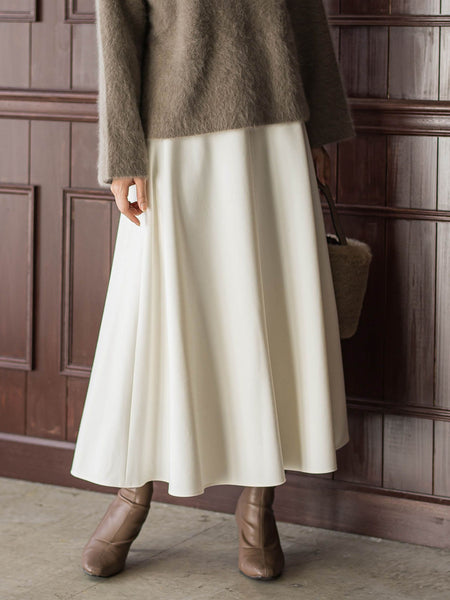 柔らかタッチで温かみのある尾州産地素材を使用したフレアスカート。表裏両面に起毛をかけたあたたかみのある素材感で、冬のコーディネートにぴったりです。縦横2WAYストレッチで動きやすく、快適な着心地を実現します。エレガントに揺れるミモレ丈フレアシルエットにセンターステッチを施し、さりげないデザインポイントに。フロントはフラットでクリーンな印象。後ろファスナー仕様で着脱も簡単です。カラーはオフホワイト・ブラック・キャメルのベーシック展開で、どんなトップスにも合わせやすい万能スカートです。----------------------------------------------------------------洗濯方法家庭洗濯:液温は30℃を限度とし、洗濯機で非常に弱い洗濯ができる。自然乾燥:日蔭の吊り干しがよい。アイロン:底面温度120℃を限度としてアイロン仕上げができる。ドライクリーニング:石油系溶剤による弱いドライクリーニングができる。----------------------------------------------------------------※画像の商品はサンプルとなりますので実際の商品と仕様、加工、サイズが若干異なる場合がございます。※お客様のモニター環境により実際のお色と多少異なる場合がございます。※撮影状況や光の当たり具合により、色合いが異なって見える場合がございます。※商品タグに記載されたサイズはヌードサイズです。実際の商品のサイズは商品情報の実寸をご確認ください。関連ワード:Droitelautreamont ドロワットロートレアモン レディース 新作 トレンド 大人フェミニン 2025秋冬 2025AW 秋冬 冬物 冬服 ポリエステル レーヨン フレアスカート
