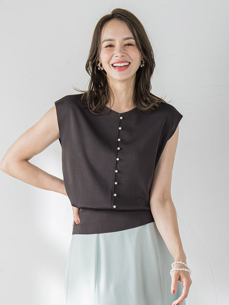 【デザインの特徴】光沢感が美しい素材で編みあげたフレンチスリーブニット。シンプルなVネックと、クルーネックにパール装飾、前後2wayでお楽しみいただけます。フレンチスリーブなので気になる腕周りをお洒落にカバーしてくれます。着るだけでこなれた印象になる、これからの季節に活躍する一枚です。【素材の特徴】ソフトで軽く、清涼感と光沢が綺麗な糸で編みあげました。美しい発色、ストレッチ性、抜群の肌触りが特徴。----------------------------------------------------------------洗濯方法家庭洗濯:液温は30℃を限度とし、手洗いができる。自然乾燥:日蔭の平干しがよい。アイロン:底面温度120℃を限度としてアイロン仕上げができる。ドライクリーニング:石油系溶剤による弱いドライクリーニングができる。----------------------------------------------------------------■モデル身長 169cm/着用サイズ M※画像の商品はサンプルとなりますので実際の商品と仕様、加工、サイズが若干異なる場合がございます。※お客様のモニター環境により実際のお色と多少異なる場合がございます。※撮影状況や光の当たり具合により、色合いが異なって見える場合がございます。※商品タグに記載されたサイズはヌードサイズです。実際の商品のサイズは商品情報の実寸をご確認ください。関連ワード:Viaggio Blu ビアッジョブルー レディース キレイめ フェミニン エレガント 華やか 上品 春 夏 2025春夏 2025SS 春服 夏服