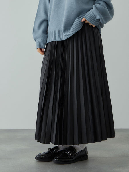 ●POINTレザーのような表情が特徴的な合繊素材を使用したプリーツスカートです。秋を感じる表情なのに、ベース地がジョーゼット素材で密閉感が少なく、また肌離れも良いため、残暑の残るタイミングでも軽やかにご着用いただける一枚です。気温の高い日にはTシャツにサンダル合わせで、秋口にはニットやジャケットなどの重厚感のあるスタイルにあわせてコーディネートのリズムに、とおすすめの一枚です。----------------------------------透け感:なし厚さ: 普通伸縮性:あり裏地: ありポケット: なし--------------------------------------------------------------------------------------------------洗濯方法家庭洗濯:液温は40℃を限度とし、手洗いができる。自然乾燥:日蔭の吊り干しがよい。アイロン:アイロン仕上げ禁止。ドライクリーニング:石油系溶剤による弱いドライクリーニングができる。----------------------------------------------------------------■モデル身長 165cm 着用サイズ M※画像の商品はサンプルとなりますので実際の商品と仕様、加工、サイズが若干異なる場合がございます。※お客様のモニター環境により実際のお色と多少異なる場合がございます。※撮影状況や光の当たり具合により、色合いが異なって見える場合がございます。関連ワード:VICKY ビッキー レディース 新作 大人カジュアル 大人コーデ 2025秋冬 2025AW 秋冬 秋物 秋服 ポリエステル 無地 プリーツスカート