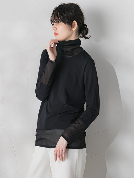 - シアー切り替え天竺カットソー≪洗濯機で洗える/紫外線防止≫