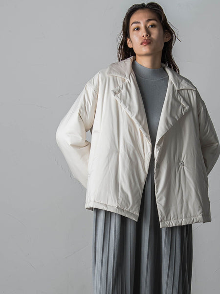 軽い着心地と、温かさを兼ね備えたチェスタージャケット。フロントデザインはステンカラージャケットにもなる仕様でカジュアルすぎず、程よいモード感ある印象に仕上げました。ダウンパックでは無いシート状のダウンだから実現する、着膨れの無いすっきりとしたシルエット。スタイリッシュで暖かい、ハイブリッド・アウター。【スタイリング】ショート丈の今時バランスなのでスカートやワイドパンツ合わせが◎足元はすっきりシャープに。【素材の特徴】マイクロファイバーを使用、上品でしなやか、ナチュラルストレッチ性のある高密度タフタ。スタイリッシュな仕上がり、軽量が魅力のシート状ダウン、“THIN DOWN”を使用。【同シリーズ】2104-38008 THINDOWNチェスターコート----------------------------------洗濯方法家庭洗濯:液温は40℃を限度とし、洗濯機で弱い洗濯ができる。自然乾燥:日蔭の吊り干しがよい。アイロン:底面温度110℃を限度としてアイロン仕上げができる。ドライクリーニング:石油系溶剤による弱いドライクリーニングができる。----------------------------------■モデル身長 166cm 170cm /着用サイズ M※画像の商品はサンプルとなりますので実際の商品と仕様、加工、サイズが若干異なる場合がございます。※お客様のモニター環境により実際のお色と多少異なる場合がございます。※撮影状況や光の当たり具合により、色合いが異なって見える場合がございます。関連ワード:MAYSON GREY socolla メイソングレイ ソコラ 大人カジュアル 秋服 冬服 ショートコート ジャケット アウター シンダウン 2023秋冬