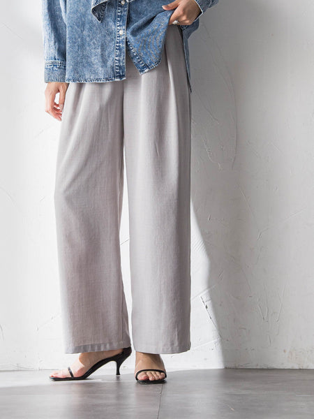 【デザインPOINT】「頼れるパンツに、新しい軽さ。」ベストセラーのイージーワイドパンツから、軽さのある新素材が登場。無駄を削ぎ落したデザイン、きれい見えとリラックス感を叶えてくれる、頼れる一本。広がりをおさえて合わせやすい、ワイドシルエット。1タック、ALLウエストゴム、ファスナー開き無しでするっと穿け、内側コードでウエスト調節可能。素材に適したシルエットを、追求したパターン。【スタイリング】同シリーズのブラウスとセットアップ対応。トップスやシューズ次第で、きれいめにもカジュアルにも着回せます。【素材の特徴】【タンブラーオックス】天然素材のような表情を持つ、さらっと軽やかなオックス素材。通気性が良く、イージーケア、ロングシーズンで活躍します。----------------------------------------------------------------洗濯方法家庭洗濯:液温は40℃を限度とし、手洗いができる。自然乾燥:日陰の吊り干しがよい。アイロン:底面温度160℃を限度としてアイロン仕上げができる。ドライクリーニング:石油系溶剤による弱いドライクリーニングができる。----------------------------------------------------------------■モデル身長 166cm 170cm / 着用サイズ M※画像の商品はサンプルとなりますので実際の商品と仕様、加工、サイズが若干異なる場合がございます。※お客様のモニター環境により実際のお色と多少異なる場合がございます。※撮影状況や光の当たり具合により、色合いが異なって見える場合がございます。関連ワード:MAYSON GREY メイソングレイ レディース 新作 大人コーデ 大人カジュアル 2026春夏 2026SS 春夏 春物 春服 イージーパンツ ワイドルーズ ポリエステル 無地 ゴム 紐