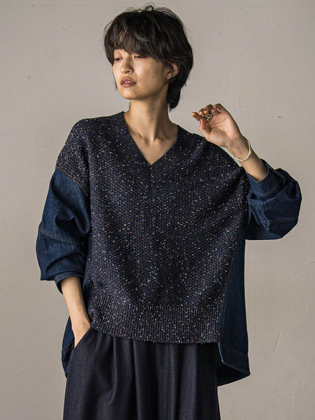 表情豊かなニットとこなれデニムの、着映えるドッキングデザイン。