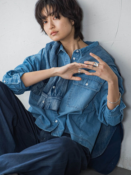 - デニムクロップドシャツ≪洗濯機で洗える≫