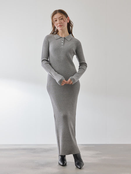 ポロカラーリブニットワンピース≪手洗い可能≫
