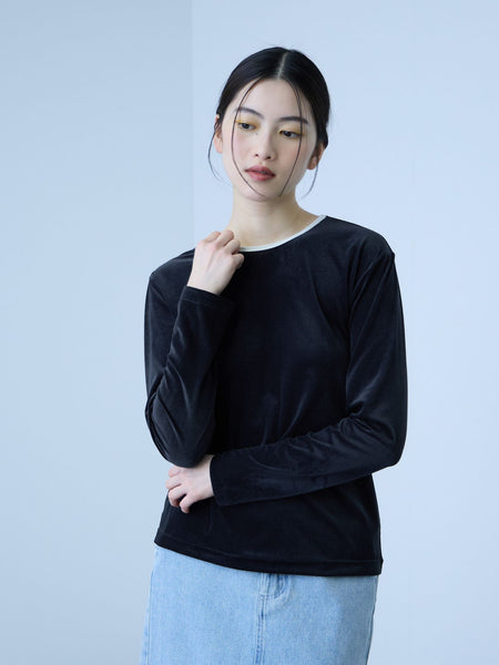 ●POINTリンガーTシャツをベースにした、シアーなロングスリーブ カットソー素材は透け感のあるシアーベロアジャージーを使用しています。バックスタイルで女性らしい雰囲気をプラスしながら、目を引く配色のパイピングでモードな雰囲気に仕上げています。デニムやカーゴパンツでシンプルなカジュアルコーデや太めのスラックスに合わせるのもおすすめです。一枚着としてはもちろん、ジャケットなどのインナー使いにもお使いいただけます。同生地の半袖タイプ、シアーベロアTシャツ(2307-60086)も展開しています。----------------------------------透け感:ややあり厚さ: 普通伸縮性:あり裏地: なしポケット: なし--------------------------------------------------------------------------------------------------洗濯方法家庭洗濯:液温は40℃を限度とし、手洗いができる。自然乾燥:日蔭の吊り干しがよい。アイロン:底面温度120℃を限度としてアイロン仕上げができる。ドライクリーニング:石油系溶剤による弱いドライクリーニングができる。----------------------------------------------------------------■モデル身長 165cm 着用サイズ M※画像の商品はサンプルとなりますので実際の商品と仕様、加工、サイズが若干異なる場合がございます。※お客様のモニター環境により実際のお色と多少異なる場合がございます。※撮影状況や光の当たり具合により、色合いが異なって見える場合がございます。関連ワード:VICKY ビッキー レディース 新作 大人カジュアル 大人コーデ 2026春夏 2026SS 春夏 春物 春服 カットソー ポリエステル ベロア クルーネック 無地 長袖