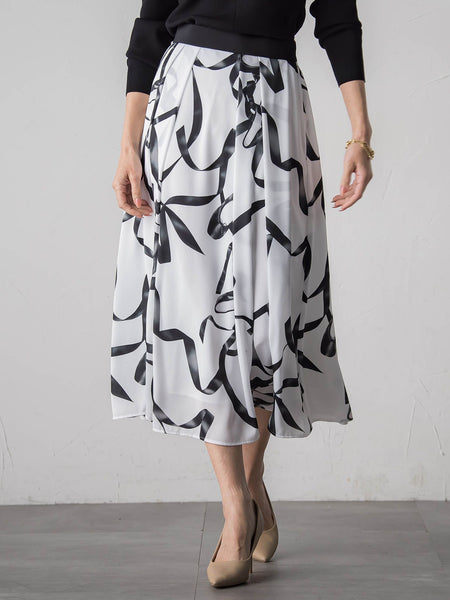 【デザインの特徴】トウシューズをリボンのラインで繊細に繋げたクラシカルでフェミニンな総柄をあしらった、上品なサテン素材のフレアスカート。華やかさがありながらも、シンプルなデザインで自然とコーディネートに馴染みます。裾に向かってふんわり広がる美しいシルエットが女性らしさを引き立て、バックウエストはゴム仕様で快適な履き心地を実現。特別な日やお出かけなど、華やかさを求めるシーンにぴったりの一着。大人の女性にふさわしい上品で印象的なスタイルを演出します。【素材の特徴】京都で描かれた美しいオリジナルプリント。Made in japanの国産生地を使用しています。----------------------------------------------------------------洗濯方法家庭洗濯:液温は30℃を限度とし、洗濯機で非常に弱い洗濯ができる。自然乾燥:日陰の吊り干しがよい。アイロン:底面温度160℃を限度としてアイロン仕上げができる。ドライクリーニング:石油系溶剤による弱いドライクリーニングができる。----------------------------------------------------------------■モデル身長 169cm/着用サイズ M※画像の商品はサンプルとなりますので実際の商品と仕様、加工、サイズが若干異なる場合がございます。※お客様のモニター環境により実際のお色と多少異なる場合がございます。※撮影状況や光の当たり具合により、色合いが異なって見える場合がございます。※商品タグに記載されたサイズはヌードサイズです。実際の商品のサイズは商品情報の実寸をご確認ください。関連ワード:Viaggio Blu ビアッジョブルー レディース 新作 大人カジュアル 大人コーデ レディース キレイめ フェミニン エレガント 華やか 上品 秋 秋服 2025AW AW 2025秋冬