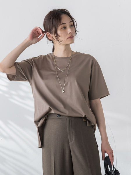 おうちスタイルから、きれいめシーンまで汎用性高く着まわせるTシャツ。