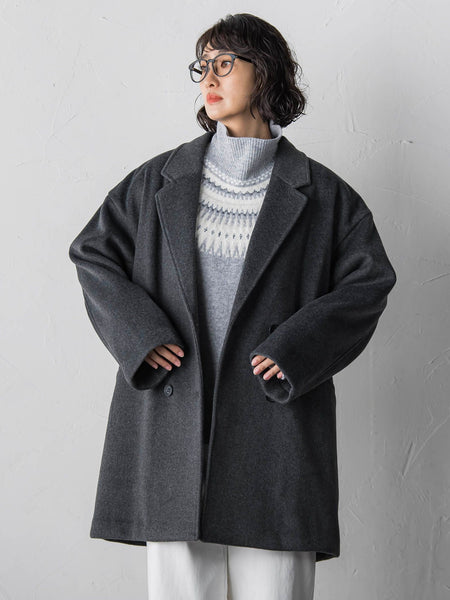 ウールライクな風合いが魅力のニットビーバー素材で仕立てた、オーバーサイズのPコート。