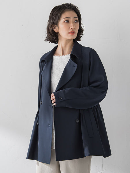 とろみのあるシャンブレー素材を使用したショートトレンチ。