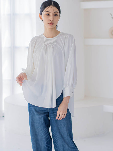 ピンタックをたっぷりあしらったブラウス。