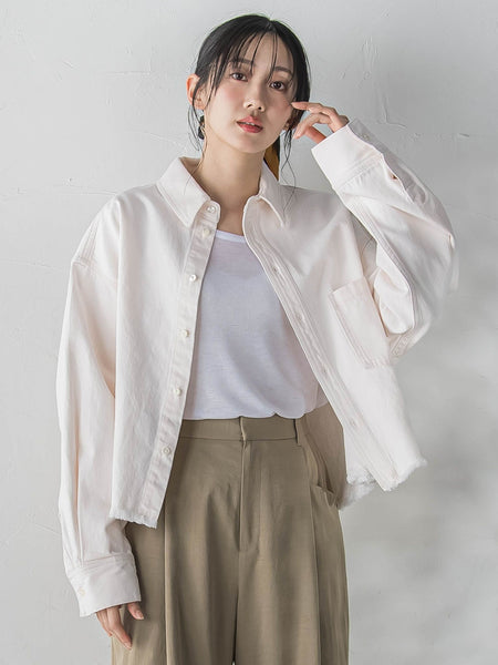 軽やかなクロップド丈がこの春のムードにぴったりなデニムシャツ。
