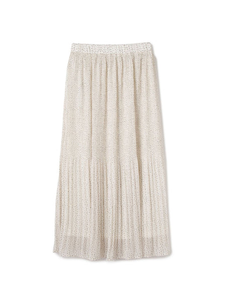 ●POINT透け感があり軽やかで、柔らかくドレープ性のあるテキスタイルを使用しています。ランダムピッチのマジョリカプリーツデザインで、ヒップ周りは適度にボリュームを抑え、裾に向かってたっぷりと分量のあるシルエットになっています。ウエストはゴム仕様でプルオンタイプのイージーな履き心地なのに、動くたびに揺らめいて美しい一枚です。腰まわりの分量を調整することで、トップスやアウターとの着合わせを選びにくいのも嬉しいポイントです。----------------------------------透け感:淡色のみややあり厚さ: やや薄い伸縮性:なし裏地: ありポケット: なし--------------------------------------------------------------------------------------------------洗濯方法家庭洗濯:液温は40℃を限度とし、手洗いができる。自然乾燥:日陰の吊り干しがよい。アイロン:アイロン仕上げ禁止。ドライクリーニング:石油系溶剤による弱いドライクリーニングができる。----------------------------------------------------------------■モデル身長 165cm 着用サイズ M※画像の商品はサンプルとなりますので実際の商品と仕様、加工、サイズが若干異なる場合がございます。※お客様のモニター環境により実際のお色と多少異なる場合がございます。※撮影状況や光の当たり具合により、色合いが異なって見える場合がございます。関連ワード:ketty ケティ レディース 新作 大人コーデ 2026春夏 2026SS 春夏 春物 春服 ポリエステル ドット・水玉 ゴム プリーツスカート オフィス 旅行 デート 通勤 ホテルディナー アフタヌーンティー