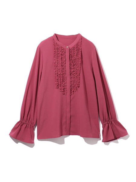 ジョーゼット素材を使用した比翼仕立てのフリルデザインブラウスです。