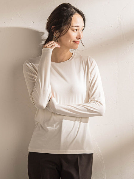 【商品説明】柔らかな肌触りと軽い着心地が魅力のクルーネックカットソー。吸湿発熱機能を備えた素材を使用しており、体から出る水分を熱に変えてやさしく暖めてくれます。微起毛仕上げにより、なめらかなタッチで快適な着心地。伸縮性に優れたベア天竺素材が体の動きにフィットし、インナーとしても1枚着としても活躍します。ハリ感があるためシルエットをきれいにキープし、上品な印象で着用いただけます。【素材】風合いのやわらかさとストレッチ性を兼ね備えたベア天竺素材。吸湿発熱性と微起毛によるソフトなぬくもり感が特徴です。軽やかでシワになりにくく、デイリーに使いやすい素材です。【スタイリング】ジャケットやカーディガンのインナーにはもちろん、ニットの下に重ねてもごわつかずにすっきり着られます。首元がすっきり見えるクルーネックで、アクセサリーやストールとも好相性。秋冬のレイヤードスタイルに欠かせないベーシックアイテムです。----------------------------------------------------------------洗濯方法家庭洗濯:液温は30℃を限度とし、洗濯機で非常に弱い洗濯ができる。自然乾燥:日陰の吊り干しがよい。アイロン:底面温度120℃を限度としてアイロン仕上げができる。ドライクリーニング:石油系溶剤による弱いドライクリーニングができる。----------------------------------------------------------------■モデル身長 165cm/着用サイズ 9号※商品タグに記載されたサイズはヌードサイズです。実際の商品のサイズは商品情報の実寸をご確認ください。※画像の商品はサンプルとなりますので実際の商品と仕様、加工、サイズが若干異なる場合がございます。※お客様のモニター環境により実際のお色と多少異なる場合がございます。※撮影状況や光の当たり具合により、色合いが異なって見える場合がございます。関連ワード:LAUTREAMONT ロートレアモン レディース きれいめカジュアル 大人カジュアル ナチュラル きれいめ キレイめ 上品 シンプル ベーシック 通勤スタイル オフィスカジュアル キャリア オフィススタイル 新作 2025秋冬 2025AW 秋冬 秋物 秋服
