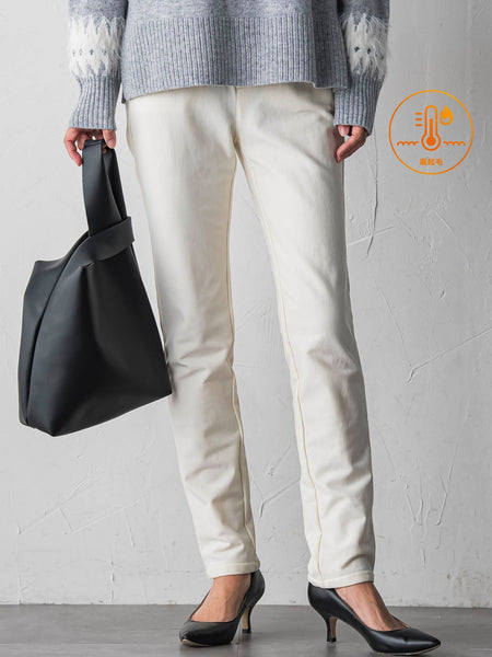 【デザインの特徴】”ラ・エフ自慢の定番ハイテンションパンツ”を、オールゴム仕様でより気軽にはいていただけるデザインにモデルチェンジ。レギンスのようでありながら、ややゆとりのあるシルエットとポケットデザインで、体型カバーもできる優秀パンツ。裏起毛であったかい冬仕様。【機能性】◆Easy Careご自宅でのお手入れが簡単◆吸湿発熱◆2WAYストレッチ◆裏起毛【素材の特徴】吸湿発熱性をもったあったか裏起毛素材。裏側はキュプラなので、滑らかで心地良い肌触り。また、ムレにくい性質も持ち合わせています。----------------------------------洗濯方法家庭洗濯:液温は30℃を限度とし、洗濯機で非常に弱い洗濯ができる。自然乾燥:日蔭の吊り干しがよい。アイロン:底面温度110℃を限度としてアイロン仕上げができる。ドライクリーニング:石油系溶剤による弱いドライクリーニングができる。----------------------------------※画像の商品はサンプルとなりますので実際の商品と仕様、加工、サイズが若干異なる場合がございます。※お客様のモニター環境により実際のお色と多少異なる場合がございます。※撮影状況や光の当たり具合により、色合いが異なって見える場合がございます。※商品タグに記載されたサイズはヌードサイズです。実際の商品のサイズは商品情報の実寸をご確認ください。関連ワード:la.f… ラ エフ 2024秋冬 2024AW 冬 冬服 ロングパンツ スタンダード スリムタイト 10分丈 ナイロン シンプル フォーマル モード マニッシュ 無地 オールゴム レギンス 体型カバー