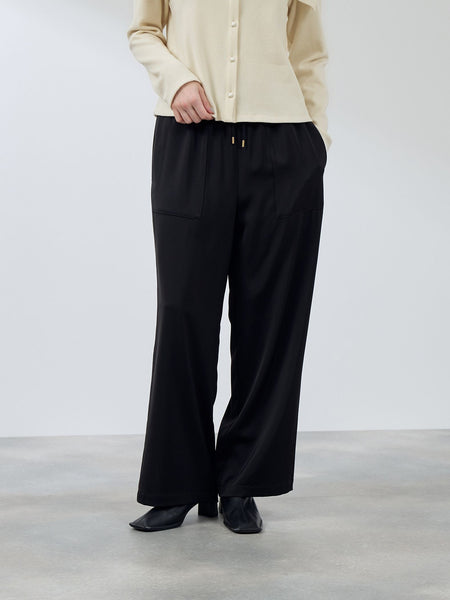 ●POINT滑らかな光沢感のあるサテンフェイスの程よく反発感のあるテキスタイルを使用しています。ドレッシーに触れがちな素材ですが、アウトポケットデザインで、ウエストはぐるりゴムギャザーにすることでリラックス感のある仕上がりに。秋を迎えるにあたり、毛足のあるニット素材とのスタイリングが増えてきますが、滑りの良い滑らかなテキスタイルなので、ニットの繊維が付着しにくいのも嬉しいポイントです。重厚感のあるコーディネートに軽やかな素材の質感ミックスで女性らしいスタイリングが完成します。----------------------------------透け感:なし厚さ: 普通伸縮性:あり裏地: ありポケット: あり--------------------------------------------------------------------------------------------------洗濯方法家庭洗濯:液温は40℃を限度とし、手洗いができる。自然乾燥:日陰の吊り干しがよい。アイロン:底面温度160℃を限度としてアイロン仕上げができる。ドライクリーニング:石油系溶剤による弱いドライクリーニングができる。----------------------------------------------------------------■モデル身長 165cm 着用サイズ M※画像の商品はサンプルとなりますので実際の商品と仕様、加工、サイズが若干異なる場合がございます。※お客様のモニター環境により実際のお色と多少異なる場合がございます。※撮影状況や光の当たり具合により、色合いが異なって見える場合がございます。関連ワード:QUEENS COURT クイーンズコート レディース 新作 フェミニン 大人コーデ 2025秋冬 2025AW 秋冬 秋物 秋服 イージーパンツ ワイドルーズ ポリエステル 無地 ゴム