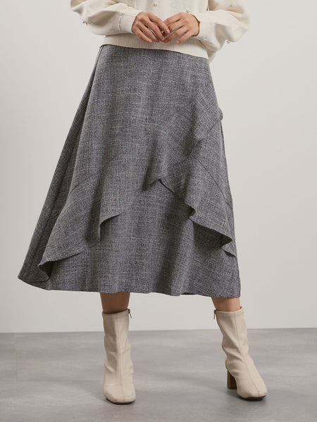 ツィードライクアシメフリルスカート≪手洗い可能≫