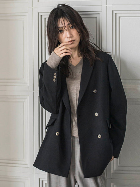 【デザインPOINT】「クラシックに、今を纏う。」”大人が着たい”を叶えるのは、きちんと見えて、かたすぎないこと。クラシックなムードをベースに、今の気分にマッチする抜け感をプラスした、ダブルブレストジャケット。重厚感のあるアンティーク調のメタル釦がポイント。セットイン袖できちんと見えながらも、今っぽく着られるボクシーなシルエット。パネル切替えを入れてすっきりと見せつつ、身体のラインを拾いすぎない絶妙なサイズ設定、動きやすさを考慮したパターン。【スタイリング】梳毛調パンツでマニッシュに、プリーツスカートでレディに、デニムでデイリーに。きれいめにもカジュアルにも振れる、万能バランス。【素材の特徴】【LANATECウーステッドストレッチ】梳毛ウールのようにしなやかで膨らみのある風合いの中肉ツイル。家庭洗濯でき、イージーケア、ピリングもしにくい、機能性の高いファブリック。----------------------------------------------------------------洗濯方法家庭洗濯:家庭での洗濯禁止。アイロン:底面温度160℃を限度としてアイロン仕上げができる。ドライクリーニング:石油系溶剤による弱いドライクリーニングができる。----------------------------------------------------------------■モデル身長 166cm 170cm / 着用サイズ M※画像の商品はサンプルとなりますので実際の商品と仕様、加工、サイズが若干異なる場合がございます。※お客様のモニター環境により実際のお色と多少異なる場合がございます。※撮影状況や光の当たり具合により、色合いが異なって見える場合がございます。関連ワード:MAYSON GREY メイソングレイ レディース 新作 大人コーデ 大人カジュアル 2025秋冬 2025AW 秋冬 秋物 秋服 合成繊維/ポリエステル