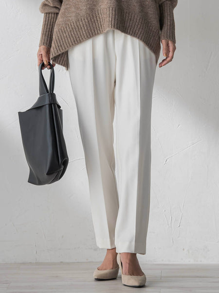 【デザインの特徴】柔らかな両面起毛素材を使用したテーパードパンツ。ほどよい厚みとふんわりとした風合いで、冬の装いにぬくもりを添えながらも軽やかな穿き心地です。ウエストは総ゴムでストレスなく過ごせ、すっきり落ちるテーパードラインが脚をきれいに見せてくれるのも魅力。カジュアルにもきれいめにも合わせやすく、デイリーに頼れる万能ボトムです。【機能性】◆Easy Careご自宅でのお手入れが簡単◆吸湿発熱◆2WAYストレッチ【素材の特徴】吸湿発熱効果のある糸を使用し、裏起毛を施すことで、スッキリ見えながらも暖かさと肌触りの良さを追求した2WAYストレッチ素材になります。両面起毛の微起毛タッチが柔らかさと肌触りの良さを実現しています。もちろんイージーケア性にも優れお手入れがが楽な製品に仕上がっています。----------------------------------------------------------------洗濯方法家庭洗濯:液温は30℃を限度とし、洗濯機で非常に弱い洗濯ができる。自然乾燥:日陰の吊り干しがよい。アイロン:底面温度120℃を限度としてアイロン仕上げができる。ドライクリーニング:石油系溶剤による弱いドライクリーニングができる。----------------------------------------------------------------※画像の商品はサンプルとなりますので実際の商品と仕様、加工、サイズが若干異なる場合がございます。※お客様のモニター環境により実際のお色と多少異なる場合がございます。※撮影状況や光の当たり具合により、色合いが異なって見える場合がございます。※商品タグに記載されたサイズはヌードサイズです。実際の商品のサイズは商品情報の実寸をご確認ください。関連ワード:la.f… ラ エフ レディース 新作 大人コーデ シンプル フォーマル モード マニッシュ 2025秋冬 2025AW 秋冬 秋物 秋服