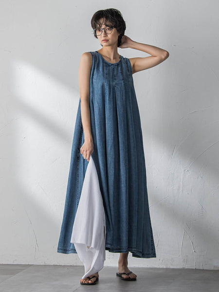 【デザインPOINT】「軽やかに揺れる、デニムワンピース。」大人気!“ゆれるデニム”シリーズ。胸元のタックとステッチがポイントになった、デニムフレアワンピース。バックスタイルには、メタルファスナーで、ポイントを付けたデザイン。身体からふわっと離れるシルエットに、縦に入れたタックでさりげない陰影を付け、奥行きを持たせています。動きに合わせて揺れる、女っぽいパターン。【スタイリング】一枚ではもちろん、ショート丈のカーディガンやブルゾンを羽織ったり、シャツをたすき掛けしてアレンジを楽しんで。【素材の特徴】【バイオシルクデニム/パウダー加工】シルクのような自然な光沢感があり、柔らかくしなやかなセルロース素材にパウダー加工を施し、こなれたムードを表現。吸水速乾による快適な着心地を提供します。----------------------------------------------------------------洗濯方法家庭洗濯:液温は30℃を限度とし、洗濯機で非常に弱い洗濯ができる。自然乾燥:日陰の吊り干しがよい。アイロン:底面温度120℃を限度としてアイロン仕上げができる。ドライクリーニング:石油系溶剤による弱いドライクリーニングができる。----------------------------------------------------------------■モデル身長 166cm 170cm / 着用サイズ M※画像の商品はサンプルとなりますので実際の商品と仕様、加工、サイズが若干異なる場合がございます。※お客様のモニター環境により実際のお色と多少異なる場合がございます。※撮影状況や光の当たり具合により、色合いが異なって見える場合がございます。関連ワード:MAYSON GREY メイソングレイ レディース 新作 大人コーデ 大人カジュアル 2026春夏 2026SS 春夏 春物 春服 フレア ノースリーブ デニム