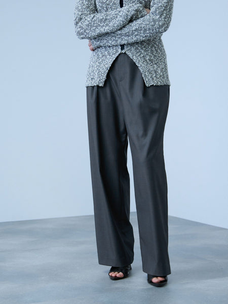 ●POINTクラシカルな洗練ワイドタックパンツ。マニッシュな印象の中にもスポーティなエッセンスを加え、トレンド感のあるバランスに仕上げました。ウエストの後ろ部分はゴム使用で楽に履けます。脚のラインを拾わないゆったりとしたシルエットで、美脚見えが叶う1本。シンプルトップスを合わせるだけで、こなれた雰囲気を演出できます。シーズンレスで着まわせる万能アイテムです。----------------------------------透け感:なし厚さ: 普通伸縮性:なし裏地: なしポケット: あり--------------------------------------------------------------------------------------------------洗濯方法家庭洗濯:液温は40℃を限度とし、手洗いができる。自然乾燥:日蔭の吊り干しがよい。アイロン:底面温度120℃を限度としてアイロン仕上げができる。ドライクリーニング:石油系溶剤による弱いドライクリーニングができる。----------------------------------------------------------------■モデル身長 165cm 着用サイズ M※画像の商品はサンプルとなりますので実際の商品と仕様、加工、サイズが若干異なる場合がございます。※お客様のモニター環境により実際のお色と多少異なる場合がございます。※撮影状況や光の当たり具合により、色合いが異なって見える場合がございます。関連ワード:VICKY ビッキー レディース 新作 大人カジュアル 大人コーデ 2026春夏 2026SS 春夏 春物 春服 ワイドルーズ コットン ポリエステル レーヨン 無地 ゴム