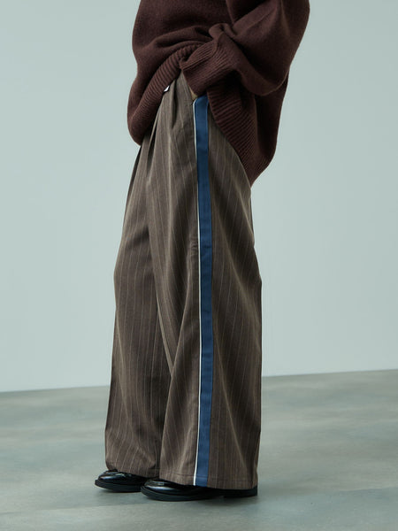 ●POINTサキソニー風のストライプ地のテキスタイルにサイドラインテープを施したクラシックにスポーツエッセンスをプラスしたスラックスパンツです。サイドラインがスタイリングにアクセントを効かせます。ゆったりとしたリラックスシルエット、ウエストはバックゴムできちんと見えしつつ、らくちんな履き心地です。今季トレンドのポロカラーニットにあわせてオーセンティックに、スウェットトップスにあわせてカジュアルアップしたスタイリングにとおすすめの一枚です。----------------------------------透け感:なし厚さ: 普通伸縮性:なし裏地: ありポケット: あり--------------------------------------------------------------------------------------------------洗濯方法家庭洗濯:液温は30℃を限度とし、手洗いができる。自然乾燥:日蔭の吊り干しがよい。アイロン:底面温度120℃を限度としてアイロン仕上げができる。ドライクリーニング:石油系溶剤による弱いドライクリーニングができる。----------------------------------------------------------------■モデル身長 165cm 着用サイズ M※画像の商品はサンプルとなりますので実際の商品と仕様、加工、サイズが若干異なる場合がございます。※お客様のモニター環境により実際のお色と多少異なる場合がございます。※撮影状況や光の当たり具合により、色合いが異なって見える場合がございます。関連ワード:VICKY ビッキー レディース 新作 大人カジュアル 大人コーデ 2025秋冬 2025AW 秋冬 秋物 秋服 ワイドルーズ ポリエステル レーヨン ストライプ ライン ゴム