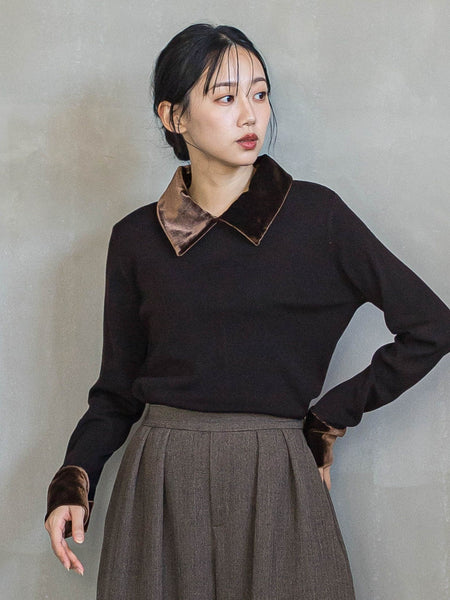 衿とカフスに光沢感のあるベロア素材を使用したエレガントで女性らしい雰囲気のある秋らしさ満点のニット。すっきりとしたコンパクトなシルエットなので、ジャケットやコートのインナーに合わせやすいプルオーバーです。ニット部分は伸縮性がありながら透けにくく、単品のトップスとしても重宝する1枚。----------------------------------------------------------------洗濯方法家庭洗濯:液温は40℃を限度とし、手洗いができる。自然乾燥:日蔭の平干しがよい。アイロン:底面温度120℃を限度としてアイロン仕上げができる。ドライクリーニング:石油系溶剤による弱いドライクリーニングができる。----------------------------------------------------------------※画像の商品はサンプルとなりますので実際の商品と仕様、加工、サイズが若干異なる場合がございます。※お客様のモニター環境により実際のお色と多少異なる場合がございます。※撮影状況や光の当たり具合により、色合いが異なって見える場合がございます。※商品タグに記載されたサイズはヌードサイズです。実際の商品のサイズは商品情報の実寸をご確認ください。関連ワード:Droitelautreamont ドロワットロートレアモン レディース 新作 トレンド 大人フェミニン 2025秋冬 2025AW 秋冬 冬物 冬服 ニット ポリエステル アクリル ポリウレタン ウール ナイロン 長袖