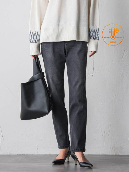 【デザインの特徴】あったか裏起毛仕様のスキニーデニムパンツ。ウエストは1周ゴム入りなので締め付け感がなく、着心地抜群です。カラーは着回ししやすいブラックとインディゴブルーの展開でお作りしています。【機能性】◆Easy Careご自宅でのお手入れが簡単◆ストレッチ性【素材の特徴】裏起毛でヨコ糸のポリエステル部分を起毛加工した保温性のある9.5OZストレッチデニムになります。起毛素材をボンディングしているのではなく生地の裏面を起毛していますので、生地の硬さがなく、生地の厚さも抑えられるので快適に着用していただけます。もちろん起毛しているため優しい肌触りです。経糸のコットンはインディゴ染料、硫化ブラック染料を使用しており、デニム本来の着用が楽しめます。----------------------------------------------------------------洗濯方法家庭洗濯:液温は40℃を限度とし、洗濯機で弱い洗濯ができる。自然乾燥:日陰の吊り干しがよい。アイロン:底面温度120℃を限度としてアイロン仕上げができる。ドライクリーニング:石油系溶剤による弱いドライクリーニングができる。----------------------------------------------------------------※画像の商品はサンプルとなりますので実際の商品と仕様、加工、サイズが若干異なる場合がございます。※お客様のモニター環境により実際のお色と多少異なる場合がございます。※撮影状況や光の当たり具合により、色合いが異なって見える場合がございます。※商品タグに記載されたサイズはヌードサイズです。実際の商品のサイズは商品情報の実寸をご確認ください。関連ワード:la.f… ラ エフ レディース 新作 大人コーデ シンプル フォーマル モード マニッシュ 2025秋冬 2025AW 秋冬 秋物 秋服