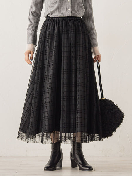 光沢と透け感のあるチュールに、チェック柄のフロッキープリントがモード×レディな印象のスカート。コディネートに取り入れるだけで秋らしいアクセントをプラスしてくれます。ウエストはゴム仕様でストレスフリーな穿き心地です。軽やかに広がるギャザーフレアシルエットで女性らしい着こなしが叶います。シンプルなニットやシャツなどほんのり辛口なトップスとの合わせがおすすめです。----------------------------------------------------------------洗濯方法家庭洗濯:液温は40℃を限度とし、手洗いができる。自然乾燥:日蔭の吊り干しがよい。アイロン:アイロン仕上げ禁止。ドライクリーニング:ドライクリーニング禁止。----------------------------------------------------------------※画像の商品はサンプルとなりますので実際の商品と仕様、加工、サイズが若干異なる場合がございます。※お客様のモニター環境により実際のお色と多少異なる場合がございます。※撮影状況や光の当たり具合により、色合いが異なって見える場合がございます。※商品タグに記載されたサイズはヌードサイズです。実際の商品のサイズは商品情報の実寸をご確認ください。関連ワード:Droitelautreamont ドロワットロートレアモン レディース 新作 トレンド 大人フェミニン 2025秋冬 2025AW 秋冬 秋物 秋服 コットン ポリエステル レーヨン ナイロン カジュアル シンプル ナチュラル キレカジ フェミニン チェック ゴム フレアスカート ギャザースカート