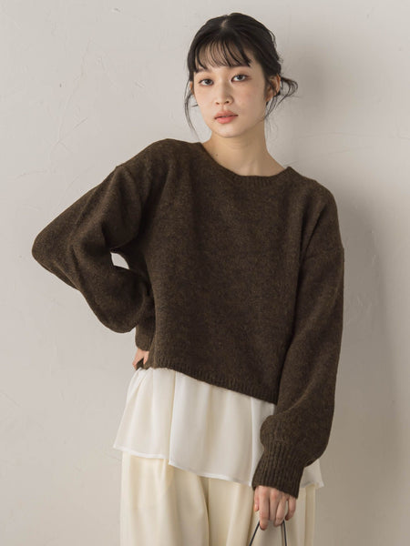 表情豊かなメランジ調の風合いが魅力の天竺ニット。さらりとした肌触りで軽やかに着こなせる一枚です。インナーにタンクトップがセットされており、裾からシャツ地が覗くデザインで、簡単にレイヤードスタイルが完成します。シンプルな中にもニュアンスのあるデザインで、コーディネートに奥行きをプラス。一枚で映える万能アイテムです。----------------------------------------------------------------洗濯方法家庭洗濯:液温は40℃を限度とし、手洗いができる。自然乾燥:日蔭の平干しがよい。アイロン:底面温度120℃を限度としてアイロン仕上げができる。ドライクリーニング:石油系溶剤による弱いドライクリーニングができる。----------------------------------------------------------------※画像の商品はサンプルとなりますので実際の商品と仕様、加工、サイズが若干異なる場合がございます。※お客様のモニター環境により実際のお色と多少異なる場合がございます。※撮影状況や光の当たり具合により、色合いが異なって見える場合がございます。※商品タグに記載されたサイズはヌードサイズです。実際の商品のサイズは商品情報の実寸をご確認ください。関連ワード:Droitelautreamont ドロワットロートレアモン レディース 新作 トレンド 大人フェミニン 2025秋冬 2025AW 秋冬 秋物 秋服 ポリエステル アクリル ウール レーヨン ポリウレタン ニット ロゴ カジュアル スウィート シンプル キレカジ フェミニン 無地 長袖