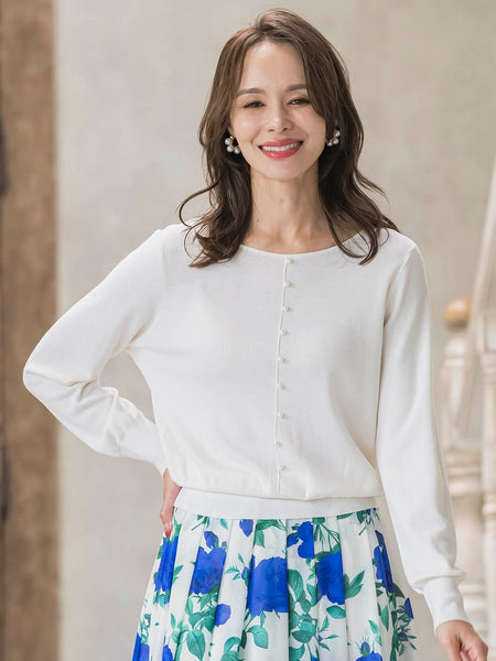 【デザインの特徴】ソフトで毛羽の少ない最高級のウール原料を使用しているので、しなやかな肌触りが心地よいニットです。透け感が少なく適度な厚みがあり伸縮性にも優れているので、ストレスなく着ていただける1枚になっています。前後2WAYで華やかに着用していただけるデザイン。裾のリブは長めに設定しているのでスタイルアップ効果があります。【素材の特徴】細くしなやかウール原料を高い技術力で紡績することで生まれる天然の光沢感と柔らかな肌触りをぜひ味わっていただきたいです。----------------------------------------------------------------洗濯方法家庭洗濯:液温は40℃を限度とし、手洗いができる。自然乾燥:日陰の平干しがよい。アイロン:底面温度160℃を限度としてアイロン仕上げができる。ドライクリーニング:石油系溶剤による弱いドライクリーニングができる。----------------------------------------------------------------■モデル身長 169cm/着用サイズ M※画像の商品はサンプルとなりますので実際の商品と仕様、加工、サイズが若干異なる場合がございます。※お客様のモニター環境により実際のお色と多少異なる場合がございます。※撮影状況や光の当たり具合により、色合いが異なって見える場合がございます。※商品タグに記載されたサイズはヌードサイズです。実際の商品のサイズは商品情報の実寸をご確認ください。関連ワード:Viaggio Blu ビアッジョブルー レディース 新作 大人カジュアル 大人コーデ レディース キレイめ フェミニン エレガント 華やか 上品 秋 秋服 2025AW AW 2025秋冬