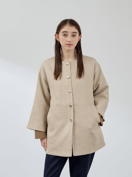 ツィーディチェックノーカラーコート≪手洗い可能≫