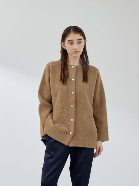 ●POINT昨年大変好評を頂いた肌触りの良いふわふわシャギーニット素材。小ぶりなメタルボタンが上品な印象のニットジャケットです。肉感があるので、ロングタームで気軽に羽織れて便利な一着です。ボクシーなフォルムとミドル丈で気になる腰周りをカバーしながら、リラックス感のある着心地に。裏面にスポンディッシュなストレッチ糸を編みこんでいるため、しっかりとした肉感と形状安定性があり、チクチク感も感じにくく、レイヤードスタイルでも繊維が付着するストレスを軽減するのも嬉しい一枚です。前を締めてプルオーバーとしてもご着用が可能で、コーディネートするハイネックインナーやボウタイリボンブラウスなどを合わせて首元を変えるだけで異なった印象に導きます。----------------------------------透け感:なし厚さ: やや厚い伸縮性:あり裏地: なしポケット: あり--------------------------------------------------------------------------------------------------洗濯方法家庭洗濯:液温は40℃を限度とし、手洗いができる。自然乾燥:日陰の平干しがよい。アイロン:底面温度120℃を限度としてアイロン仕上げができる。ドライクリーニング:石油系溶剤による弱いドライクリーニングができる。----------------------------------------------------------------■モデル身長 165cm 着用サイズ M※画像の商品はサンプルとなりますので実際の商品と仕様、加工、サイズが若干異なる場合がございます。※お客様のモニター環境により実際のお色と多少異なる場合がございます。※撮影状況や光の当たり具合により、色合いが異なって見える場合がございます。関連ワード:QUEENS COURT クイーンズコート レディース 新作 フェミニン 大人コーデ 2025秋冬 2025AW 秋冬 秋物 秋服 合成繊維/ポリエステル ナイロン ニット
