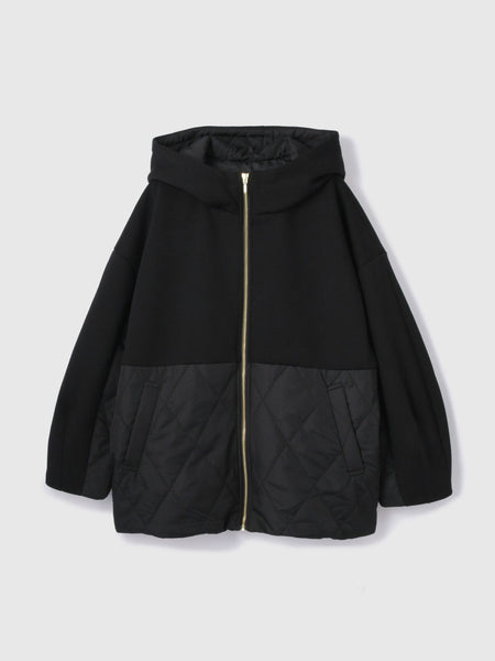 ウエスト〜裾にかけて中綿のダイヤ柄キルティングで切り替えたダンボールパーカーです。