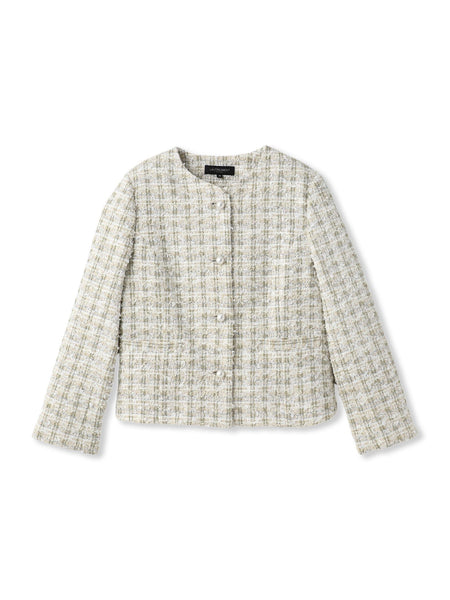 【デザイン】ミニマルなデザインにパールボタンを効かせたクルーネックツイードジャケット。コンパクトで端正なシルエットに仕上げているため、パンツにもスカートにも合わせやすく、着回し力の高い一枚です。前開きボタン仕様で着脱しやすく、ポケット付きなので実用性も◎。総裏仕立てで仕上げているため、フォーマルなシーンにも対応可能です。【素材】リボンヤーンとラメ糸を贅沢に織り込んだ、日本国内生産のファンシーツイード。リボンヤーン特有の凹凸感とラメのさりげない煌めきが華やかな印象を演出します。軽さと柔らかさを兼ね備え、長時間の着用も快適に過ごせるのが魅力です。----------------------------------------------------------------洗濯方法家庭洗濯:家庭での洗濯禁止。アイロン:底面温度120℃を限度としてアイロン仕上げができる。ドライクリーニング:石油系溶剤による弱いドライクリーニングができる。----------------------------------------------------------------■モデル身長 165cm/着用サイズ 9号※商品タグに記載されたサイズはヌードサイズです。実際の商品のサイズは商品情報の実寸をご確認ください。※画像の商品はサンプルとなりますので実際の商品と仕様、加工、サイズが若干異なる場合がございます。※お客様のモニター環境により実際のお色と多少異なる場合がございます。※撮影状況や光の当たり具合により、色合いが異なって見える場合がございます。関連ワード:LAUTREAMONT ロートレアモン レディース きれいめカジュアル 大人カジュアル ナチュラル きれいめ キレイめ 上品 シンプル ベーシック 通勤スタイル オフィスカジュアル キャリア オフィススタイル 新作 2025秋冬 2025AW 秋冬 秋物 秋服