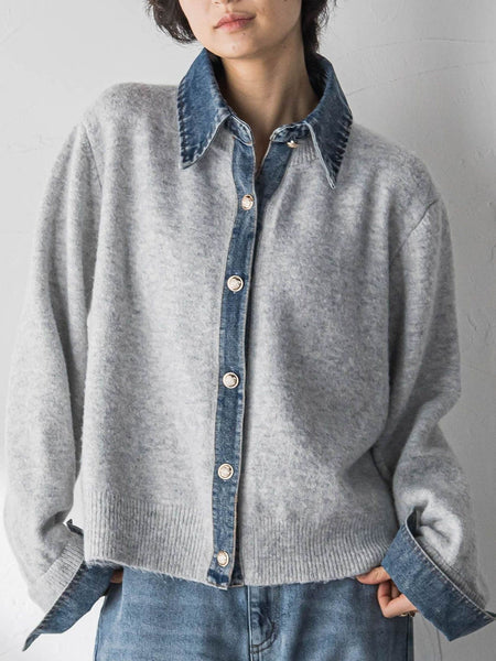 【デザインPOINT】「デニムを重ねたみたいで、これ一枚。」カーディガンにデニムシャツをレイヤードしたような、ドッキングデザイン。加工感のあるデニムに、ゴールド釦をきかせたこなれ感が、大人にマッチ。品良く着こなせる、コンパクトな丈感とサイジングがポイント。コンパクトながらも、身頃はニットならではの柔らかい着心地。襟・前立て・袖口のデニム切替えがアクセントに。【スタイリング】前を開けて羽織りとして、閉じて一枚着としても活躍。ワイドパンツやボリューム系ボトムと好相性。【素材の特徴】【アクリルヤーン 天竺】もちっとした弾力のあるニット糸を使用。目を詰めて編みたてることで、ふくらみとほどよい厚みを実現。素肌にも着やすい、なめらかな肌触りが魅力。----------------------------------------------------------------洗濯方法家庭洗濯:液温は40℃を限度とし、手洗いができる。自然乾燥:日陰の吊り干しがよい。アイロン:底面温度120℃を限度としてアイロン仕上げができる。ドライクリーニング:石油系溶剤による弱いドライクリーニングができる。----------------------------------------------------------------■モデル身長 166cm 170cm / 着用サイズ M※画像の商品はサンプルとなりますので実際の商品と仕様、加工、サイズが若干異なる場合がございます。※お客様のモニター環境により実際のお色と多少異なる場合がございます。※撮影状況や光の当たり具合により、色合いが異なって見える場合がございます。関連ワード:MAYSON GREY メイソングレイ レディース 新作 大人コーデ 大人カジュアル 2025秋冬 2025AW 秋冬 冬物 冬服 カーディガン ニット アクリル 長袖