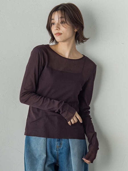 コットン100%の繊細なチュール素材を使用したシンプルなロンT。