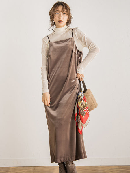 今季トレンドのベロア素材を使用したキャミワンピース。