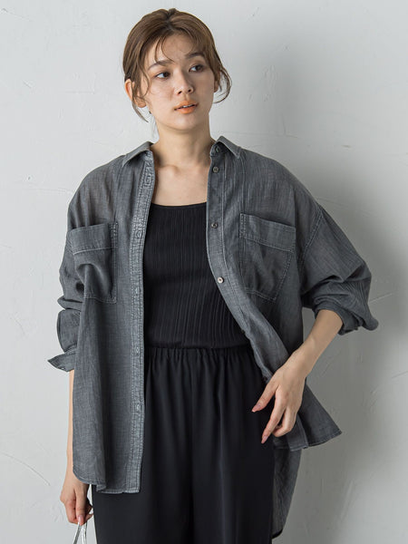 これまでに無い2オンスの極薄コットンデニムを使用した、デニムなのにほんのりシアー感のある新しい感覚のシャツ。吹きつけ加工でムラのあるヴィンテージ感を表現した表情がこなれ感をプラスしてくれます。ガーゼのような柔らかなタッチで肌触りの良さも抜群です。ライトな羽織りにも、ニットベストなどの中にも合わせやすい秋に活躍すること間違い無しの1枚です。----------------------------------------------------------------洗濯方法家庭洗濯:液温は30℃を限度とし、洗濯機で非常に弱い洗濯ができる。自然乾燥:日蔭の吊り干しがよい。アイロン:底面温度160℃を限度としてアイロン仕上げができる。ドライクリーニング:石油系溶剤による弱いドライクリーニングができる。----------------------------------------------------------------※画像の商品はサンプルとなりますので実際の商品と仕様、加工、サイズが若干異なる場合がございます。※お客様のモニター環境により実際のお色と多少異なる場合がございます。※撮影状況や光の当たり具合により、色合いが異なって見える場合がございます。※商品タグに記載されたサイズはヌードサイズです。実際の商品のサイズは商品情報の実寸をご確認ください。関連ワード:Droitelautreamont ドロワットロートレアモン レディース 新作 トレンド 大人フェミニン 2025秋冬 2025AW 秋冬 秋物 秋服 シャツ コットン デニム 長袖