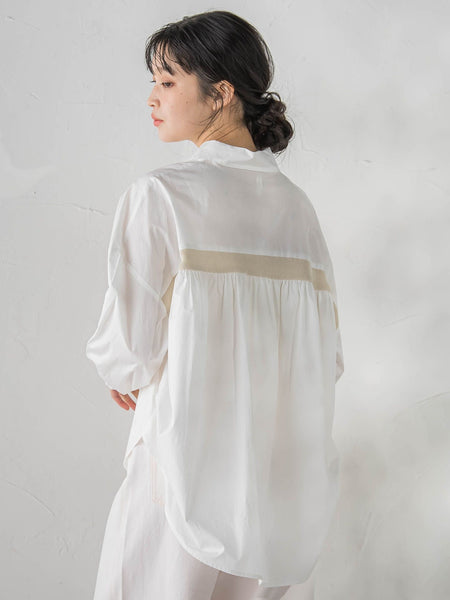 毛羽立ちを抑えた上質なコーマ糸を使用し、柔らかくなめらかな肌触りが魅力のコットン100%素材です。通気性に優れ季節を問わず快適に着用していただけます。バックヨークに施したニットテープがポイントの一着です。フロントの切り替えやボリューム感のある袖によって立体的なシルエットに仕上げました。----------------------------------------------------------------洗濯方法家庭洗濯:液温は40℃を限度とし、手洗いができる。自然乾燥:日蔭の吊り干しがよい。アイロン:底面温度120℃を限度としてアイロン仕上げができる。ドライクリーニング:石油系溶剤による弱いドライクリーニングができる。----------------------------------------------------------------※画像の商品はサンプルとなりますので実際の商品と仕様、加工、サイズが若干異なる場合がございます。※お客様のモニター環境により実際のお色と多少異なる場合がございます。※撮影状況や光の当たり具合により、色合いが異なって見える場合がございます。※商品タグに記載されたサイズはヌードサイズです。実際の商品のサイズは商品情報の実寸をご確認ください。関連ワード:Droitelautreamont ドロワットロートレアモン レディース 新作 トレンド 大人フェミニン 2026春夏 2026SS 春夏 春物 春服 ブラウス コットン レーヨン ナイロン 長袖