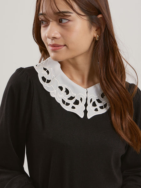 取外し可能なレースカラーデザインのニットソー素材のプルオーバーです。