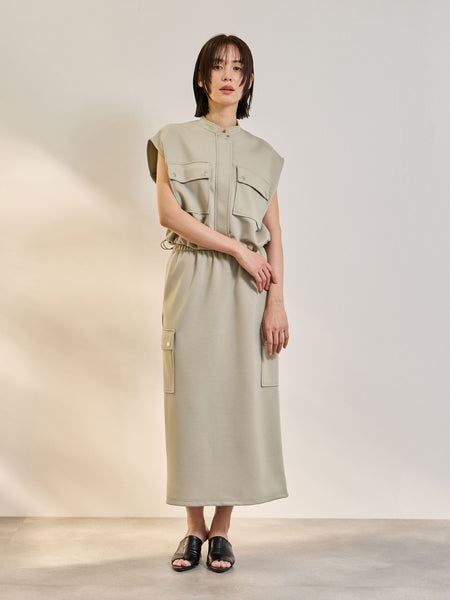 ●POINTクリーンな見た目で、程よくハリ・落ち感があり、クッションのようなふんわりと柔らかい肌触りのダンボールニット素材を使用しています。伸縮性があり、扱いやすいイージーケア素材です。フラップポケットデザインが印象的なベストとIラインスカートの2ピースアイテムです。ベストは裾にドローコードが仕込まれて、シルエット変化が可能です。気温が低い日にはインナーを仕込んで、気温が高くなってきたら1枚で、などコーディネートによってロングシーズンご着用が可能です。また、単品での着回しにも重宝し、着こなしの幅を広げる嬉しい2ピースです。同素材を使用したシリーズにダンボールニットスキッパートップ×スカート2ピース(4101-60013)がございます。----------------------------------透け感:淡色のみややあり厚さ: やや厚い伸縮性:あり裏地: なしポケット: あり--------------------------------------------------------------------------------------------------洗濯方法家庭洗濯:液温は30℃を限度とし、洗濯機で非常に弱い洗濯ができる。自然乾燥:日陰の吊り干しがよい。アイロン:底面温度120℃を限度としてアイロン仕上げができる。ドライクリーニング:石油系溶剤による弱いドライクリーニングができる。----------------------------------------------------------------■モデル身長 165cm 着用サイズ M※画像の商品はサンプルとなりますので実際の商品と仕様、加工、サイズが若干異なる場合がございます。※お客様のモニター環境により実際のお色と多少異なる場合がございます。※撮影状況や光の当たり具合により、色合いが異なって見える場合がございます。関連ワード:ketty ケティ レディース 新作 大人コーデ 2026春夏 2026SS 春夏 春物 春服 Iライン 無地 ノースリーブ 合成繊維/ポリエステル レーヨン ベスト ニット オフィス 旅行 デート 通勤 ホテルディナー アフタヌーンティー