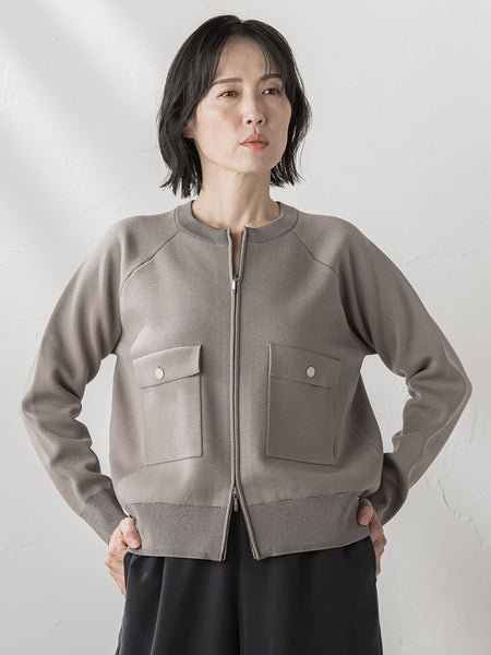 【デザインの特徴】ニット素材ならではの柔らかさと伸縮性を活かしたブルゾンは、快適な着心地と動きやすさで一日中ストレスフリーに過ごしていただけます。ジャケットのようなきちんと感を保ちながらも、ニット特有の軽やかさでカジュアルから通勤スタイルまで幅広く対応できる万能アイテムです。さらにシワになりにくく、お手入れも簡単。日常をより快適に、そして上品に彩ります。【機能性】◆Washableご自宅での手洗いが可能【素材の特徴】表に品の良いツヤ感のあるレーヨン混の糸、裏にスポンディッシュな糸を使用することで布帛見えのキレイ目な仕上がりと立体的なシルエットが魅力。----------------------------------------------------------------洗濯方法家庭洗濯:液温は30℃を限度とし、手洗いができる。自然乾燥:日陰の平干しがよい。アイロン:底面温度160℃を限度としてアイロン仕上げができる。ドライクリーニング:石油系溶剤による弱いドライクリーニングができる。----------------------------------------------------------------※画像の商品はサンプルとなりますので実際の商品と仕様、加工、サイズが若干異なる場合がございます。※お客様のモニター環境により実際のお色と多少異なる場合がございます。※撮影状況や光の当たり具合により、色合いが異なって見える場合がございます。※商品タグに記載されたサイズはヌードサイズです。実際の商品のサイズは商品情報の実寸をご確認ください。関連ワード:la.f… ラ エフ レディース 新作 大人コーデ シンプル フォーマル モード マニッシュ 2025秋冬 2025AW 秋冬 秋物 秋服