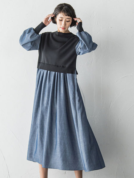 【デザインの特徴】ニットと布帛をドッキングさせた異素材ミックスのワンピース。まるでジレを重ねて着たような奥行きのあるデザインで、一枚でレイヤードスタイルが完成します。袖口にはリブを配し、さっと捲し上げてニュアンスをつけられるのも嬉しいポイント。きちんと感がありながら、デイリーに着やすい着心地を備えた、大人のための万能ワンピースです。----------------------------------------------------------------洗濯方法家庭洗濯:液温は30℃を限度とし、手洗いができる。自然乾燥:日陰の平干しがよい。アイロン:底面温度120℃を限度としてアイロン仕上げができる。ドライクリーニング:石油系溶剤による弱いドライクリーニングができる。----------------------------------------------------------------※画像の商品はサンプルとなりますので実際の商品と仕様、加工、サイズが若干異なる場合がございます。※お客様のモニター環境により実際のお色と多少異なる場合がございます。※撮影状況や光の当たり具合により、色合いが異なって見える場合がございます。※商品タグに記載されたサイズはヌードサイズです。実際の商品のサイズは商品情報の実寸をご確認ください。関連ワード:la.f… ラ エフ レディース 新作 大人コーデ シンプル フォーマル モード マニッシュ 2025秋冬 2025AW 秋冬 秋物 秋服