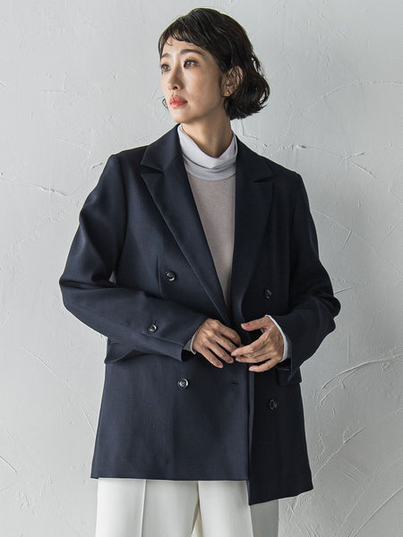 【デザインの特徴】軽く膨らみのあるウール調合繊で端正に仕立てたブレザー。ややゆとりのあるボクシーなサイズ感で、今っぽい抜け感も演出できる一着。裏地付きで、インナー次第で長く着用でき、肌寒い時期のアウターとしてもおすすめ。女性らしいアイテムと掛け合わせたり、デニムではずしたり、様々なコーデでお楽しみいただける大人の羽織りアイテムです。【機能性】◆Washableご自宅での手洗いが可能◆防シワ性◆ストレッチ性【素材の特徴】トップ糸のようなミックスカラー感と表情のある太番手感を持ち合わせたストレッチ性に優れたシャーク素材になります。クリアな表面感とドライなタッチ、イージーケア性が特徴の素材となっております。----------------------------------------------------------------洗濯方法家庭洗濯:液温は40℃を限度とし、手洗いができる。自然乾燥:日陰の吊り干しがよい。アイロン:底面温度120℃を限度としてアイロン仕上げができる。ドライクリーニング:石油系溶剤による弱いドライクリーニングができる。----------------------------------------------------------------※画像の商品はサンプルとなりますので実際の商品と仕様、加工、サイズが若干異なる場合がございます。※お客様のモニター環境により実際のお色と多少異なる場合がございます。※撮影状況や光の当たり具合により、色合いが異なって見える場合がございます。※商品タグに記載されたサイズはヌードサイズです。実際の商品のサイズは商品情報の実寸をご確認ください。関連ワード:la.f… ラ エフ レディース 新作 大人コーデ シンプル フォーマル モード マニッシュ 2025秋冬 2025AW 秋冬 秋物 秋服