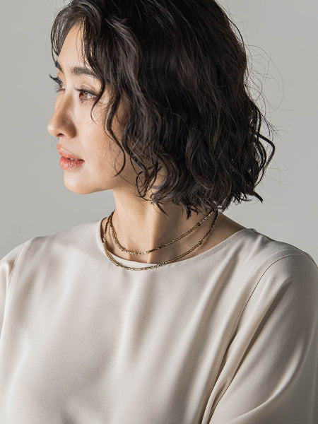 様々なビーズを組み合わせたさりげない煌めきが女性らしいネックレス。輪で長めに着用していただいたり、2重で短く着用しても可愛いアイテムです。※画像の商品はサンプルとなりますので実際の商品と仕様、加工、サイズが若干異なる場合がございます。※お客様のモニター環境により実際のお色と多少異なる場合がございます。※撮影状況や光の当たり具合により、色合いが異なって見える場合がございます。※商品タグに記載されたサイズはヌードサイズです。実際の商品のサイズは商品情報の実寸をご確認ください。関連ワード:la.f… ラ エフ レディース 新作 大人コーデ シンプル フォーマル モード マニッシュ 2025秋冬 2025AW 秋冬 秋物