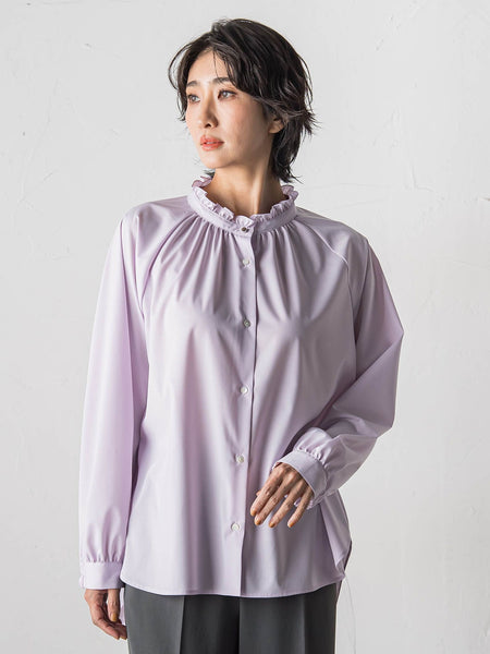 【デザインの特徴】首元のフリルが大人かわいい印象のブラウス。1枚着としても映えるデザインですが、ジレやジャケットのインナーとしても着回しの効くアイテムです。前あきの為着脱もしやすく、幅広い着こなしが楽しめます。【素材の特徴】◆Easy Careご自宅でのお手入れが簡単【素材の特徴】ポリエステル高混率の程よい落ち感が特徴のストレッチブロード素材になります。イージーケア性に優れシワも気になりずらく快適に着用していただける素材感となっております。----------------------------------------------------------------洗濯方法家庭洗濯:液温は40℃を限度とし、洗濯機で弱い洗濯ができる。自然乾燥:日陰の吊り干しがよい。アイロン:底面温度120℃を限度としてアイロン仕上げができる。ドライクリーニング:石油系溶剤による弱いドライクリーニングができる。----------------------------------------------------------------■モデル身長 164cm/着用サイズ M※画像の商品はサンプルとなりますので実際の商品と仕様、加工、サイズが若干異なる場合がございます。※お客様のモニター環境により実際のお色と多少異なる場合がございます。※撮影状況や光の当たり具合により、色合いが異なって見える場合がございます。※商品タグに記載されたサイズはヌードサイズです。実際の商品のサイズは商品情報の実寸をご確認ください。関連ワード:la.f… ラ エフ レディース 新作 大人コーデ シンプル フォーマル モード マニッシュ 2026春夏 2026SS 春夏 春物 春服