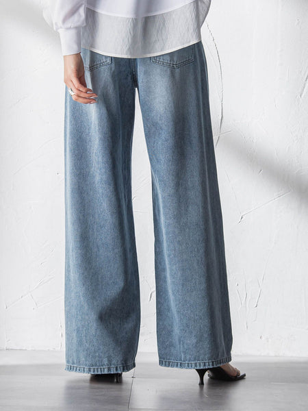 【デザインPOINT】「しなやかに更新、大人デニム。」定番人気のデニムワイドパンツが、しなやかな素材にアップデート。デニム=穿きづらい、という概念が変わる、大人のためのニュートラルな一本。今っぽい絶妙な太さで、すとんと落ちるワイドシルエット。ルーズすぎないフォルムと、深めの股上が大人にマッチ。脇線を前振りにして、脚長の視覚効果あるパターンに拘りました。【スタイリング】SSは、きれい色のトップスや、ナチュラルカラーと合わせて、軽やかな着こなしを。今シーズンの他デニムとも色合わせしているので、デニムonデニムもおすすめ。【素材の特徴】【10oz セルロース混デニム】セルロース混のデニム地を使用。通常のデニムよりも柔らかく、しなやかな着心地が魅力。春らしいホワイトと、グレイッシュに仕上げた大人ブルーを展開。----------------------------------------------------------------洗濯方法家庭洗濯:液温は30℃を限度とし、洗濯機で非常に弱い洗濯ができる。自然乾燥:日陰の吊り干しがよい。アイロン:底面温度160℃を限度としてアイロン仕上げができる。ドライクリーニング:石油系溶剤による弱いドライクリーニングができる。----------------------------------------------------------------■モデル身長 166cm 170cm / 着用サイズ M※画像の商品はサンプルとなりますので実際の商品と仕様、加工、サイズが若干異なる場合がございます。※お客様のモニター環境により実際のお色と多少異なる場合がございます。※撮影状況や光の当たり具合により、色合いが異なって見える場合がございます。関連ワード:MAYSON GREY メイソングレイ レディース 新作 大人コーデ 大人カジュアル 2026春夏 2026SS 春夏 春物 春服 ワイドルーズ コットン デニム 無地