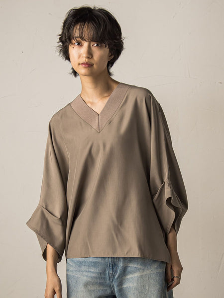 - タックワイドスリーブVネックドルマンブラウス≪手洗い可能≫